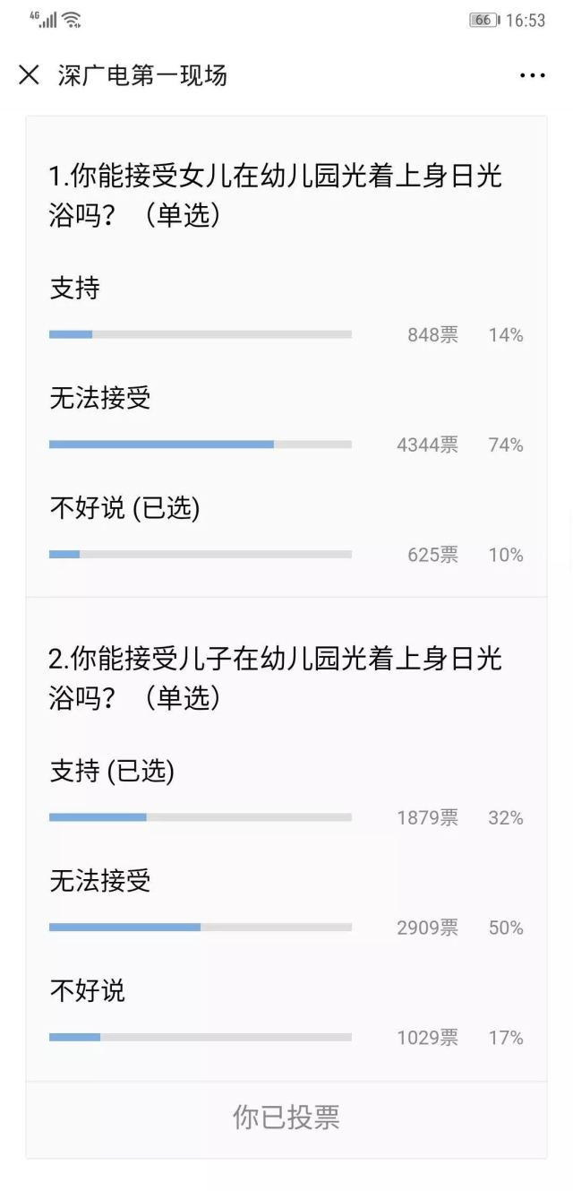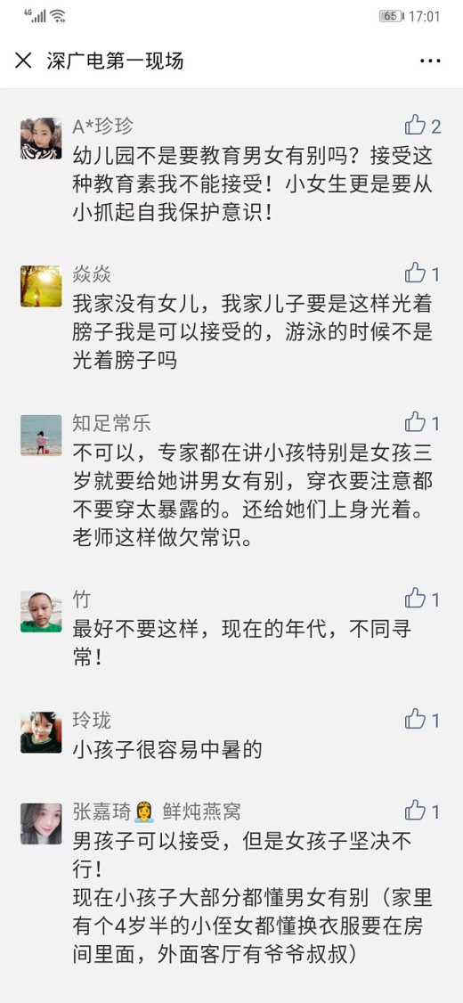 不過,也有家長認為,日光浴有益于孩子的成長,并且孩子年齡尚小,正處于純真無邪的時候,但不應(yīng)該過早把成年人復(fù)雜的思想灌輸給孩子。
