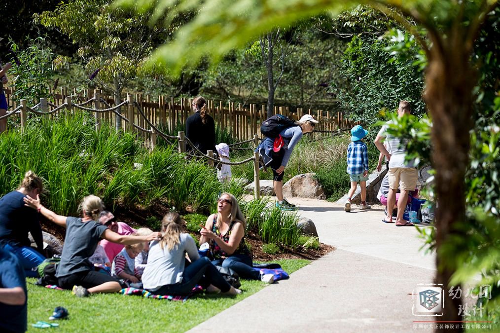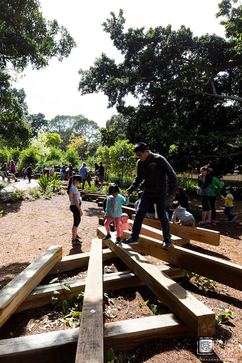 澳派景觀總監(jiān)兼悉尼科技大學副教授Sacha Coles說:“孩子喜歡發(fā)現(xiàn)、挑戰(zhàn)、運動和冒險。他們在自然中就會很開心,可以玩水、爬樹、在水池里跳躍、在樹林里捉迷藏。這是我們作為父母的本能告訴我們的,而我們作為設(shè)計師則是把這些觀察融入工作中。” 所以在這個野趣游樂公園里,天然的材料以及原始性的景觀營造出一個讓孩子們身處真實森林的空間,使孩子們更親近自然。