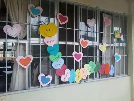 而簡單的愛心拼接成毛毛蟲窗飾充滿童趣,孩子們在上面寫下對媽媽的祝福,一定會讓媽媽們感動不已。