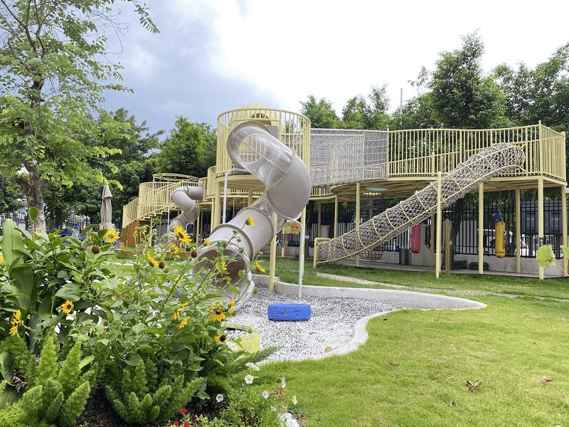 由攀爬、滑行鉆筒、走梯、蕩秋千等功能部件和結(jié)構(gòu)、扣件及連接部件組成的無動力游樂設(shè)備十分適合學(xué)齡前兒童體驗(yàn),可以鍛煉到幼兒“跑、跳、抓、鉆、走、投擲、平衡、攀登和翻滾”等基本動作,讓孩子們在玩中學(xué)、玩中練。但是每個幼兒園的場地情況各有不同,游樂設(shè)備則需要根據(jù)場地的實(shí)際情況進(jìn)行定制設(shè)計(jì),將空間和玩具更好地結(jié)合,發(fā)揮玩具和場地的最大作用。