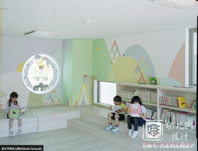 幼兒園比較特別之處在于幼兒園室內(nèi)墻面是與日本著名平面設(shè)計(jì)師森本千繪合作完成的。森本千繪的畫(huà)被印在了幼兒園室內(nèi)的墻面上。