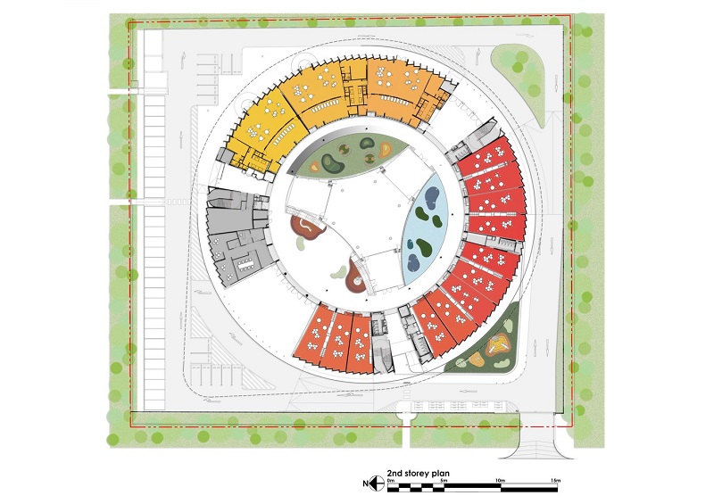 小孩身心發(fā)展是設(shè)計的基礎(chǔ),增添小孩的互動及促進運動,設(shè)置大量的綜合區(qū)域,從咖啡廳、圖書館、數(shù)理教室、藝術(shù)室至運動場,教育不再局限于教室,無論教師或小孩都能從中找到驚喜與樂趣。