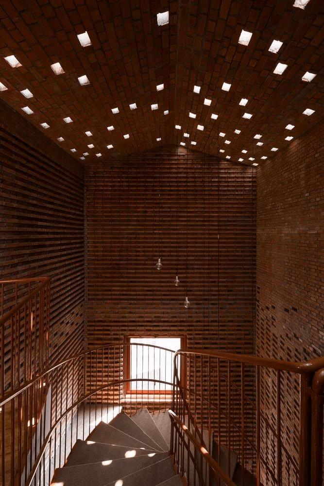 同樣在越南,Chuon Chuon Kim2幼兒園中裸磚形成的開口讓的室內(nèi)空間有了更多光線的變化,星星點(diǎn)點(diǎn)的光斑給予特殊的視覺效果,傳達(dá)出獨(dú)特的審美價(jià)值。此外,這些細(xì)小的開口并有利于建筑內(nèi)部的自然通風(fēng)。